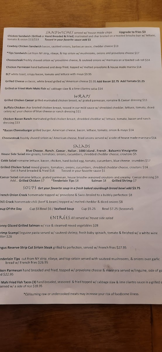 Guests frequently rave about the wings, touted as the best in town, and the delightful blue cheese chicken salad. There's a palpable sense of camaraderie among the staff, who ensure attentive service, even during busy shifts. Families enjoy the tavern-style ambiance, often returning for the fresh, timely-prepared dishes and the fun games available.